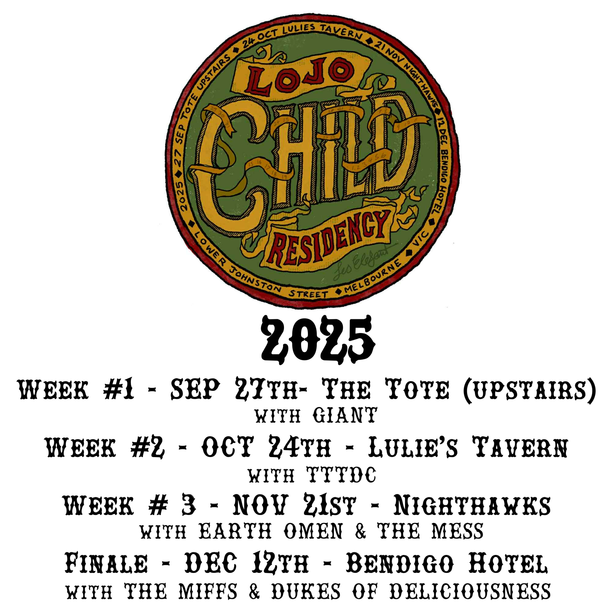 By consistently touring nationally and internationally, CHILD has become a fixture of the global stoner and heavy rock scenes. Yet, their roots remain firmly planted in Melbourne, a city they've honored with legendary residencies at venues like the iconic Cherry Bar. They possess an intense passion for the blues, viewing it not just as a genre but as a wellspring of emotion and a vehicle for sonic freedom.